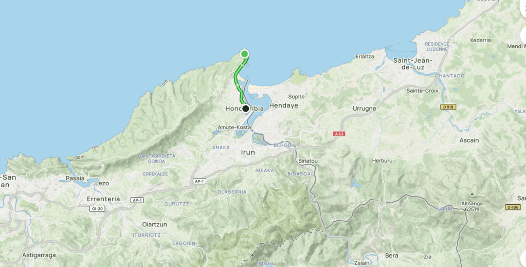 Today’s walk was a flat walk along the coast, starting past the harbour in Hondarribia. Over the stretch of water lay France as Hondarribia and nearby, Irun perched right on the boarder with France. Our accommodation was just shy of San Sebastian Airport meaning a very gentle start to the walk across the Pyrenees.