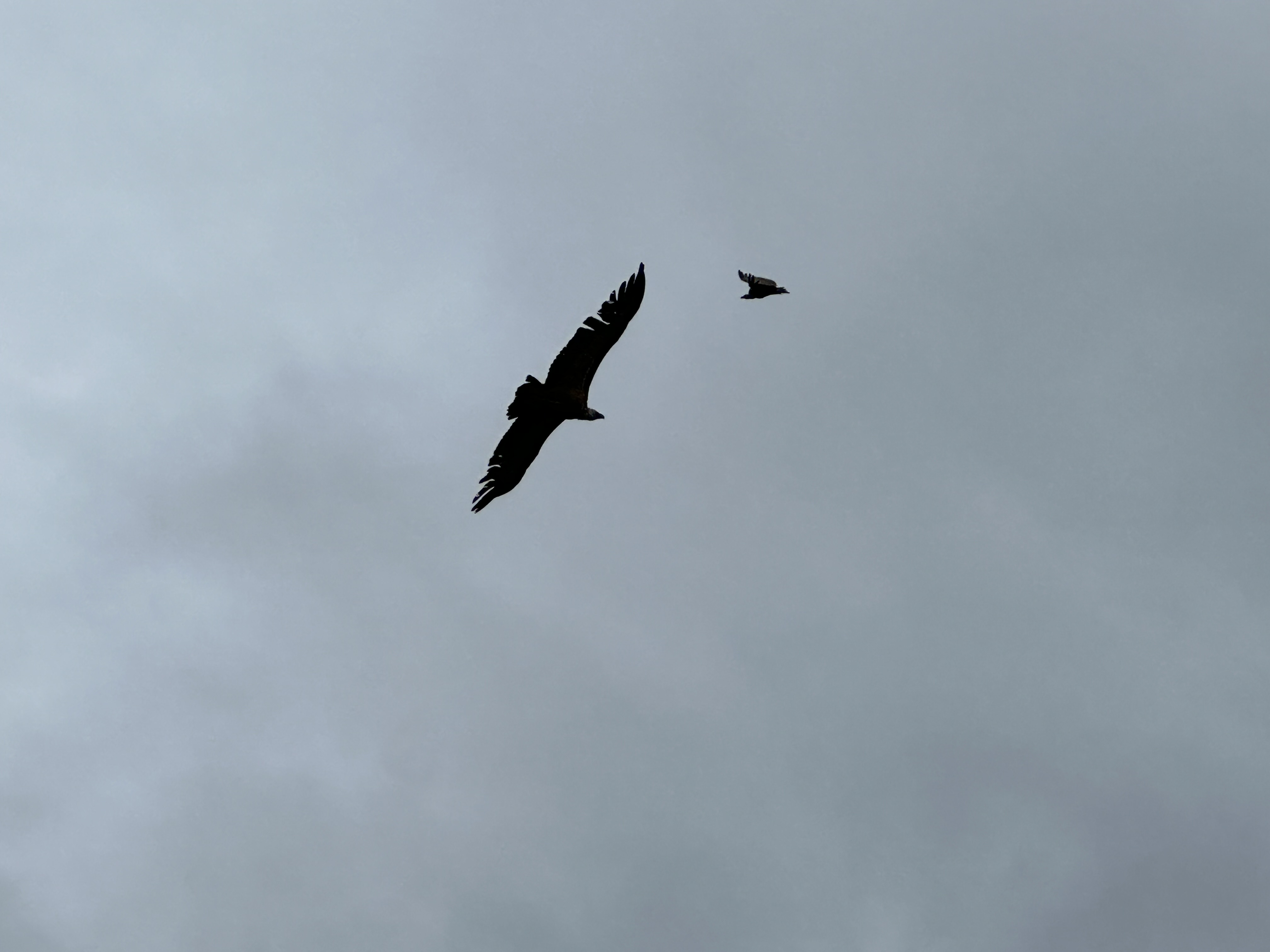 We were joined briefly by some large kites who circled us for some time before dropping away into the trees below us.