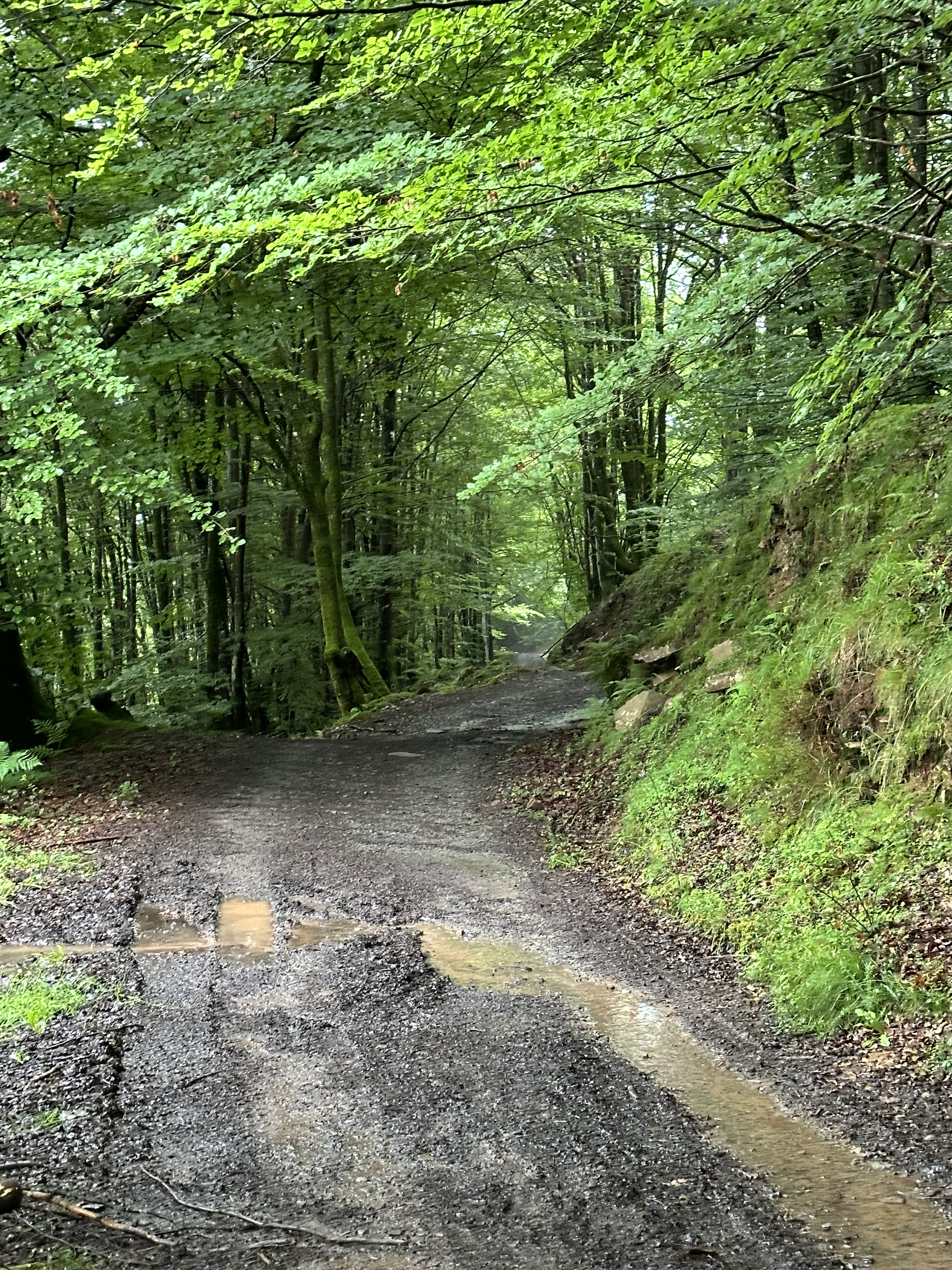 8km in to the walk was a pleasant coffee stop at Benta Lizarrieta. Its location was notable as we had hit the French border. Only a small sign and a scattering of French number plates in the car park alerted us to this.