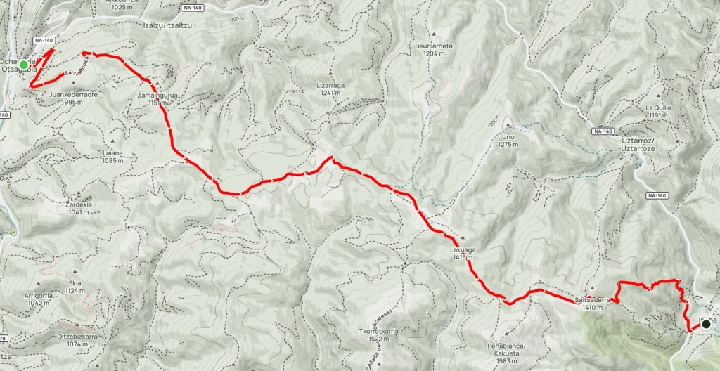 Ochagavia was quite a typical small town in Navarra, positioned as it was on a river and with street names and signs written in both Spanish and Basque. Larger than Aribe it was known for producing cider, something we all imbibed the night before. Waking up to equally good weather as yesterday we walked along then over the river and made our way up a gravel track.