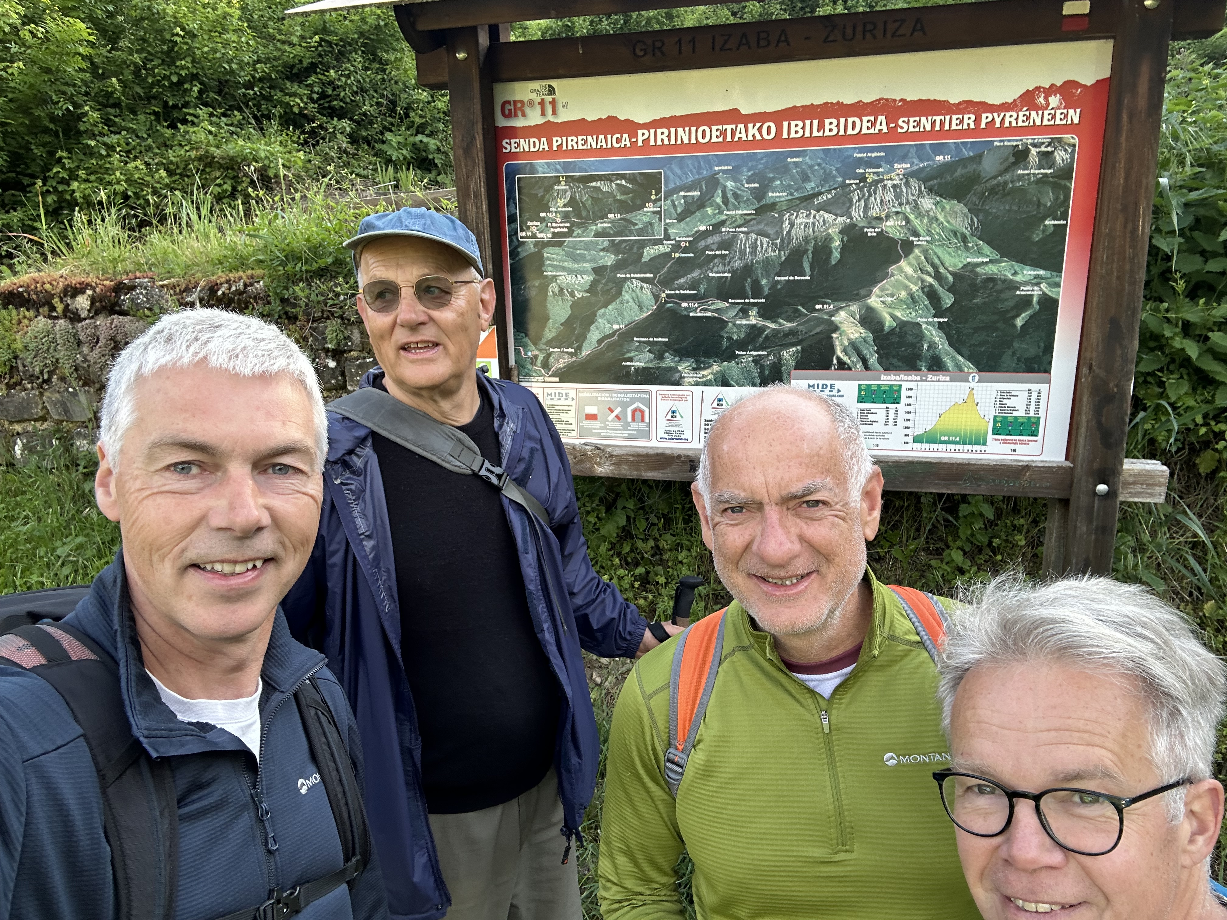 Leaving Isaba, we found the GR 11 signpost for the obligatory team photo at the beginning of the day. We were joined again by Andreas.