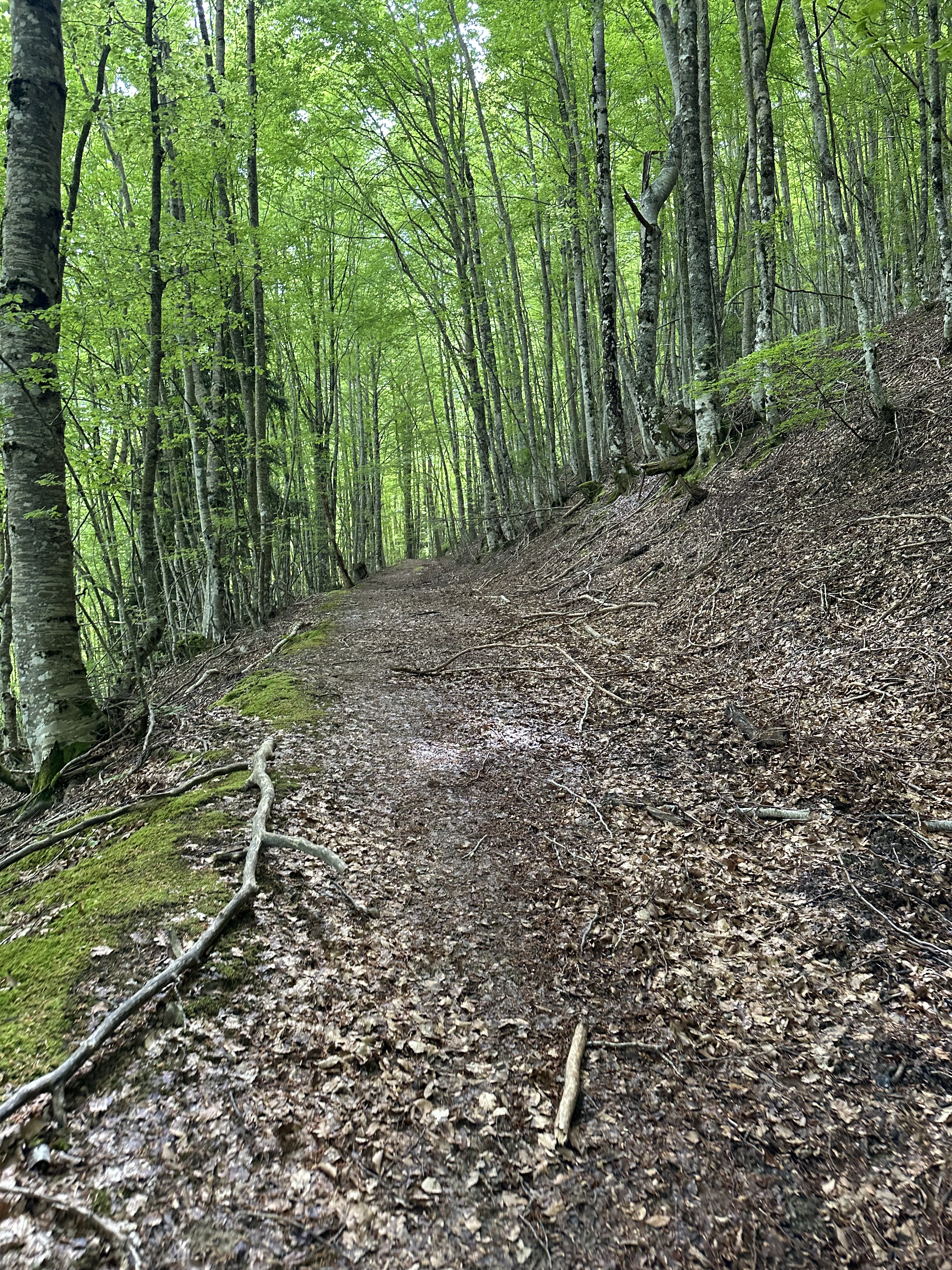 The early gentle climbs along a solid path and allow us some leafy views of Isaba and the Barranca de Belabarze river behind us.