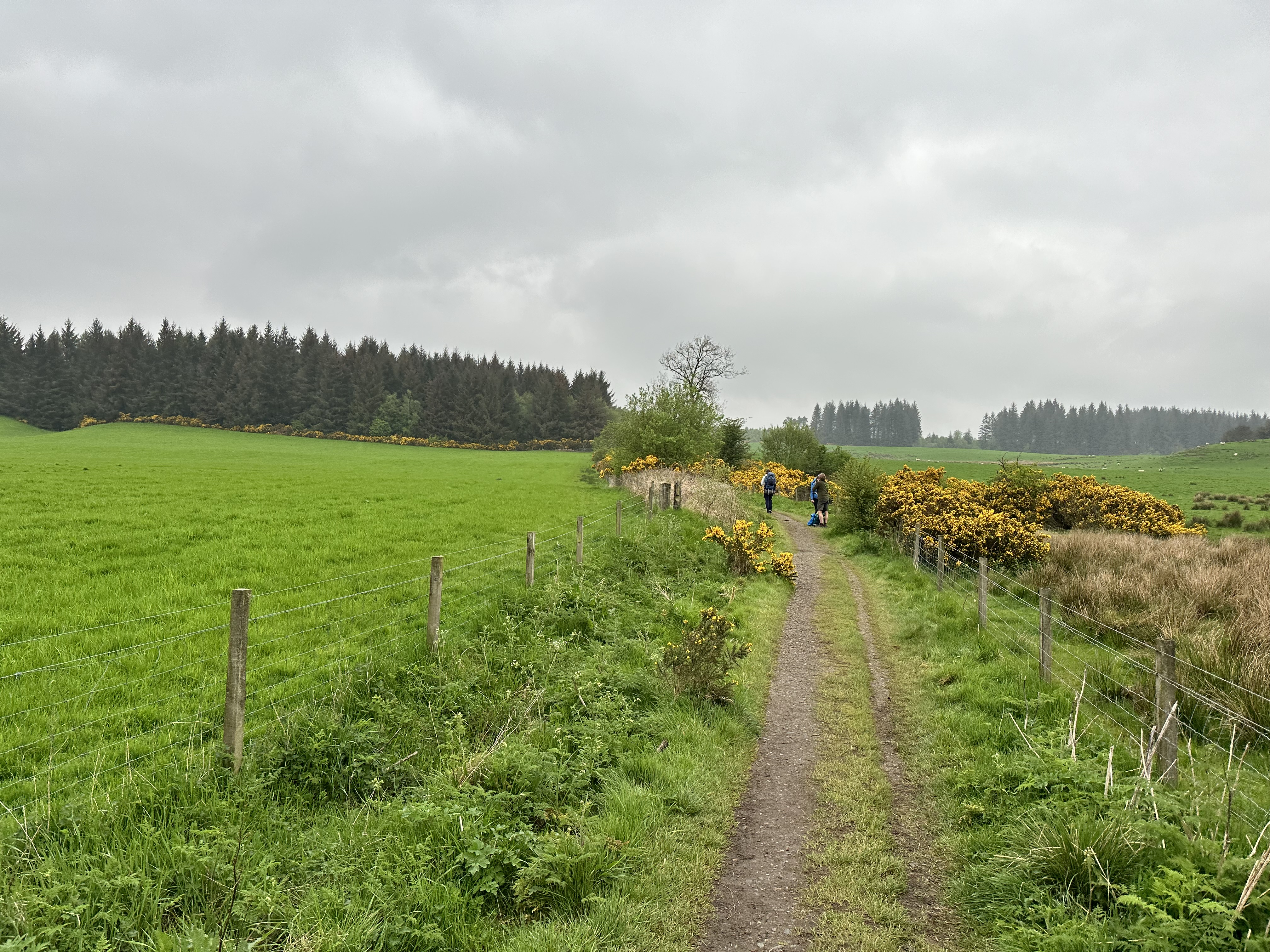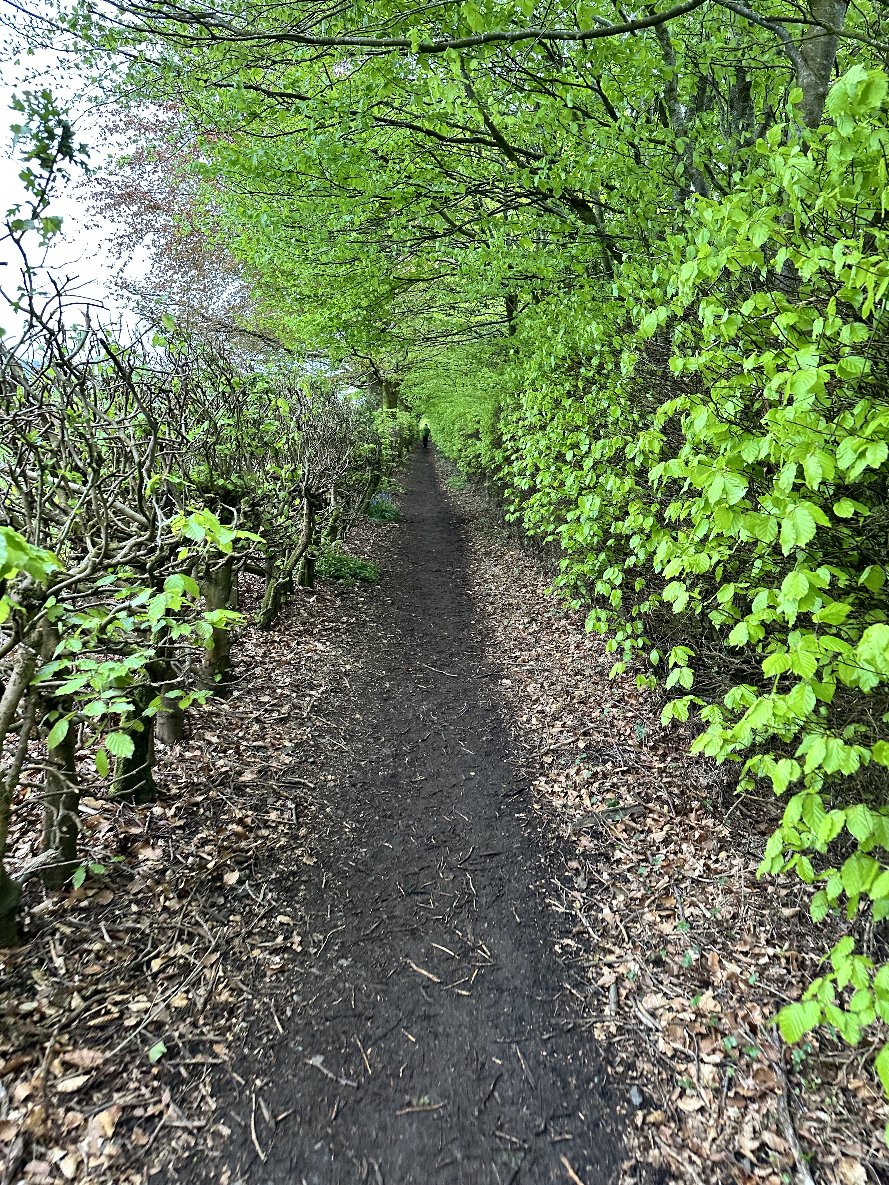 The first part of the walk meant walking back from whence I’d come to join the trail. The early part of the walk ran along the Old Military Road to the side of the A811 behind a row of beech hedge.