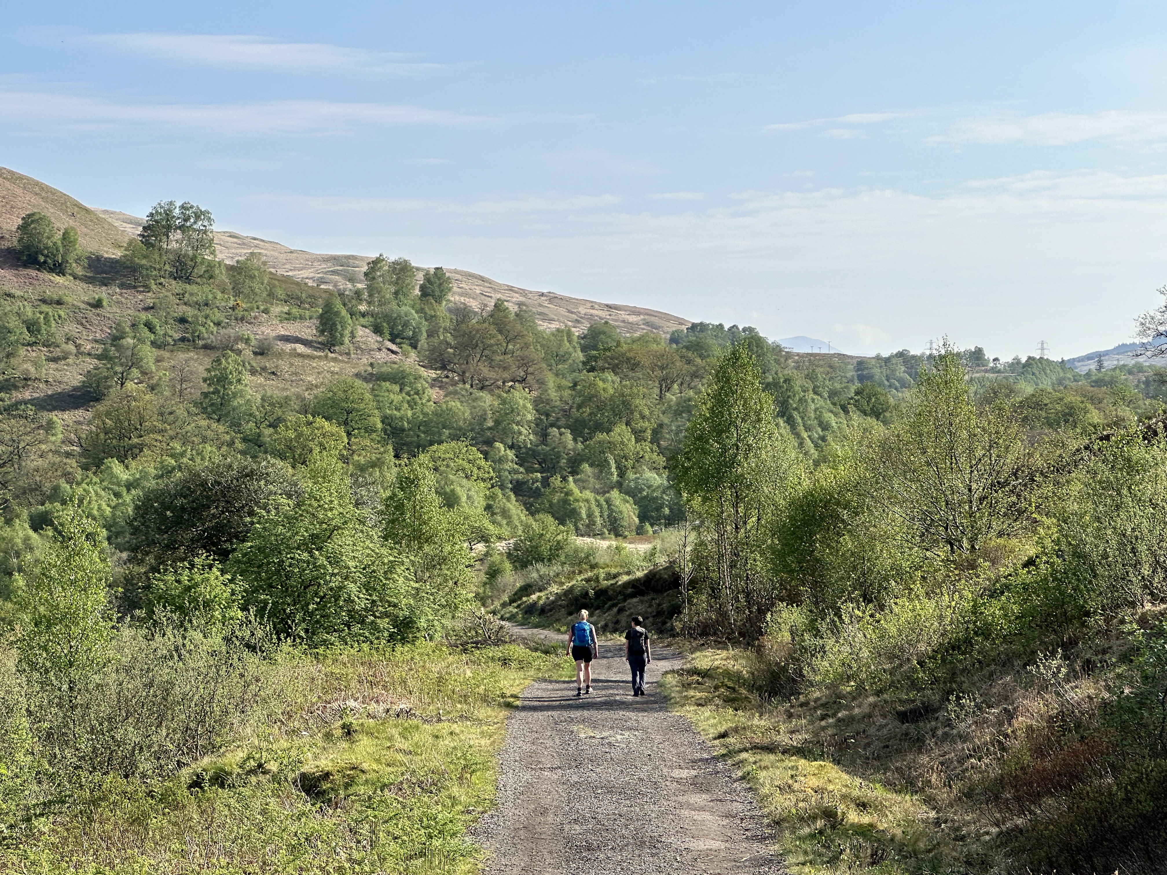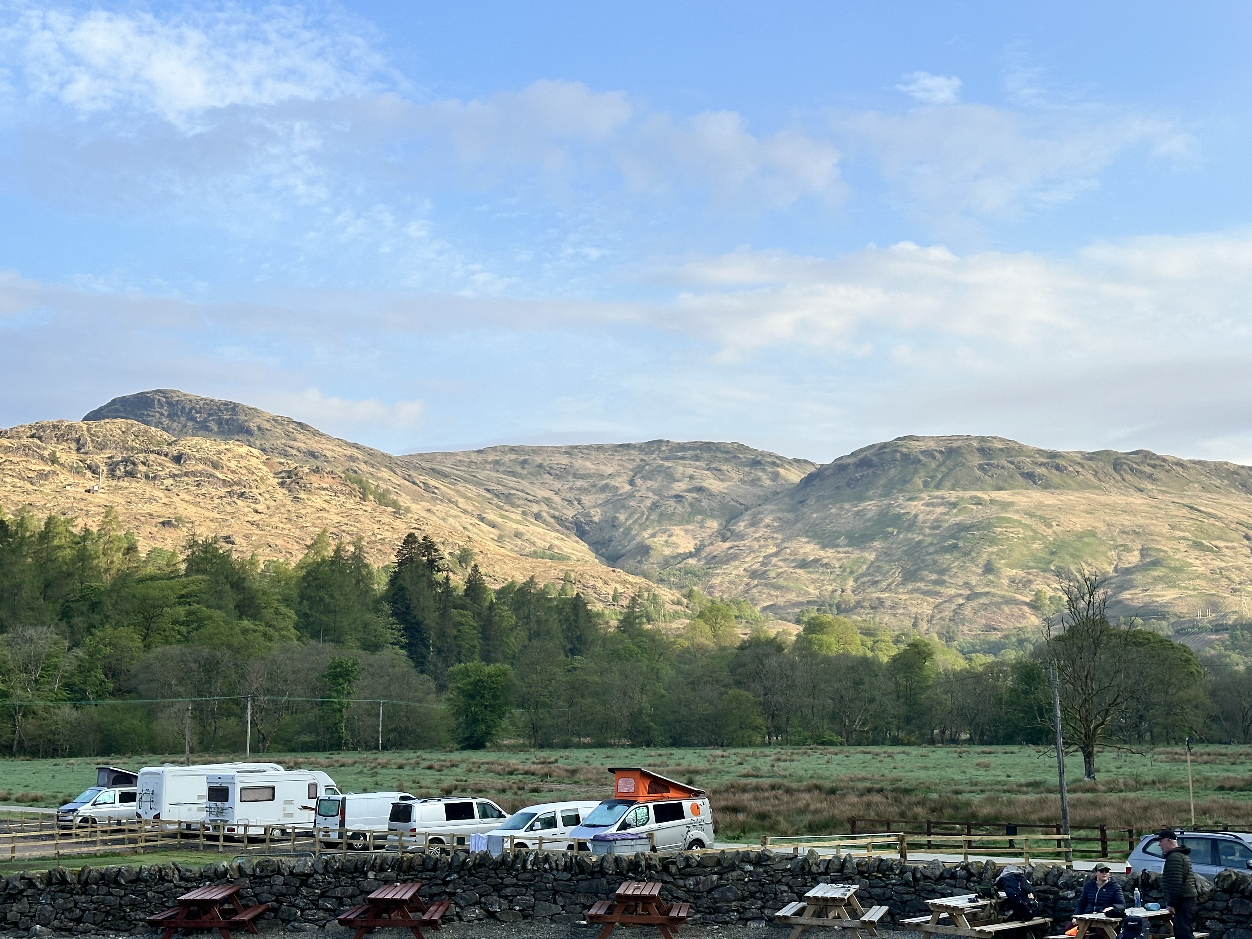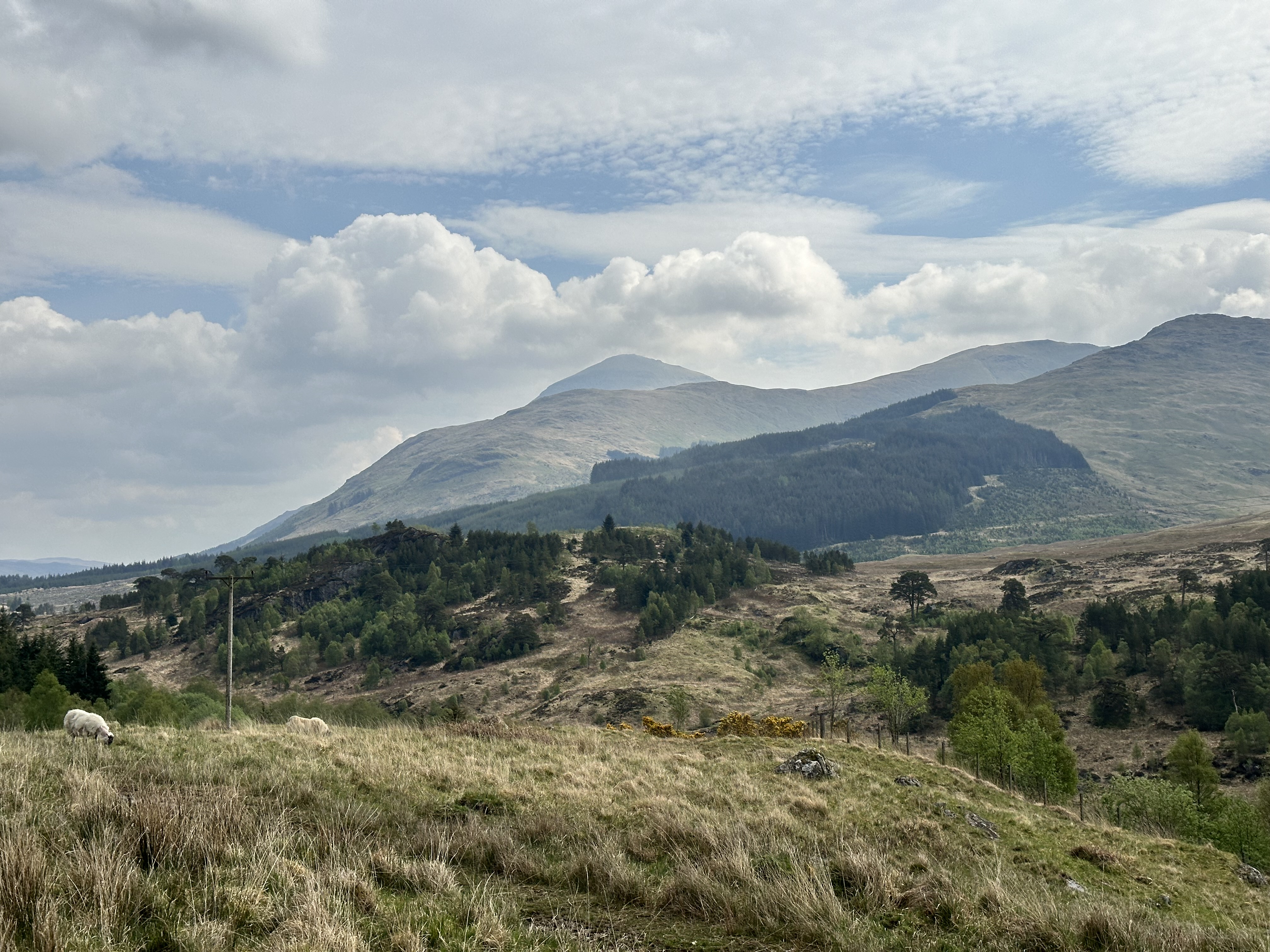 The day started with blue skies and this wonderful view of the hills on the west side of the A82 from our campsite.