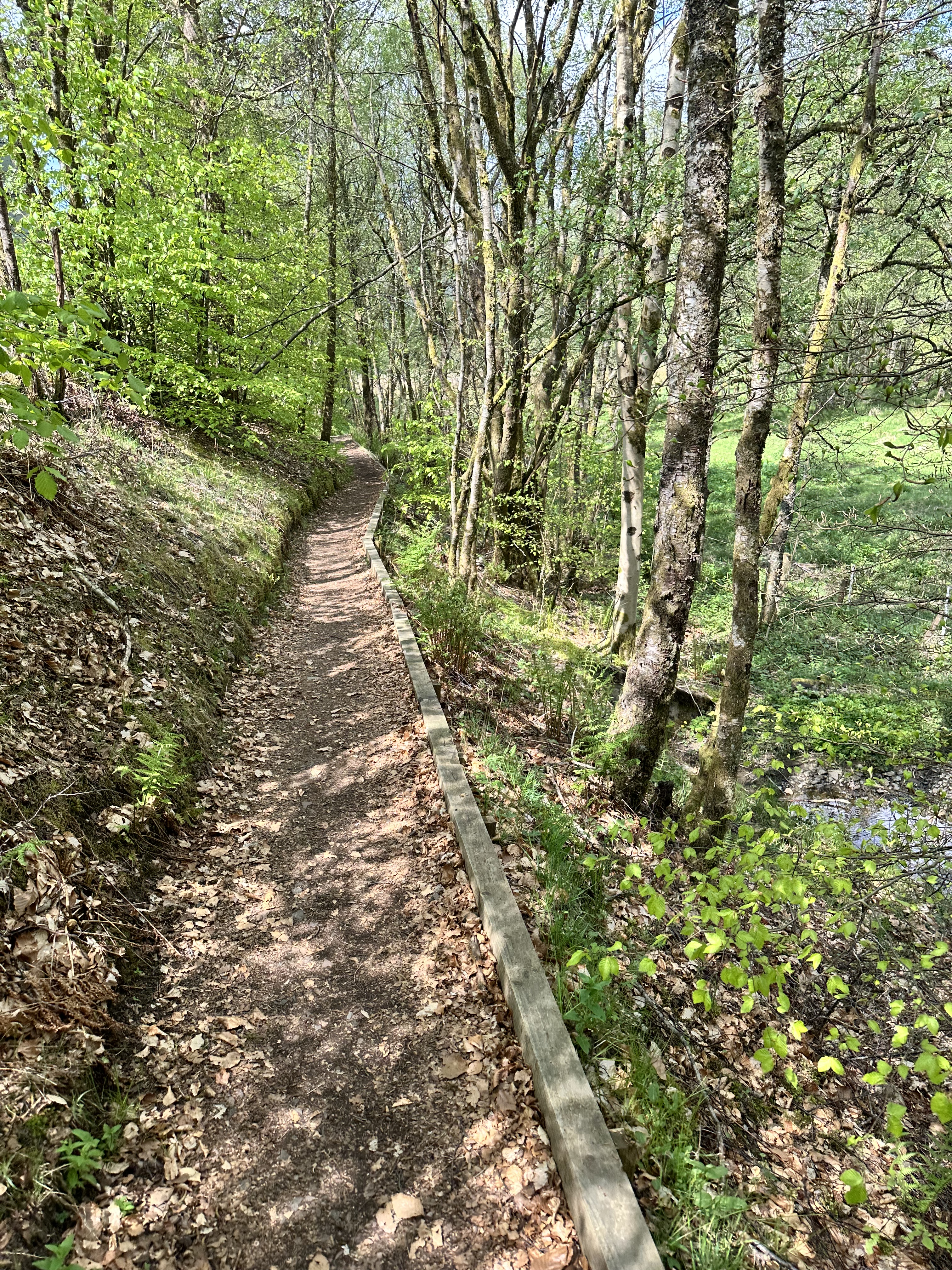 Now dropping down to cross the train line and road again, the path along the road offered a tree-lined avenue for a while.