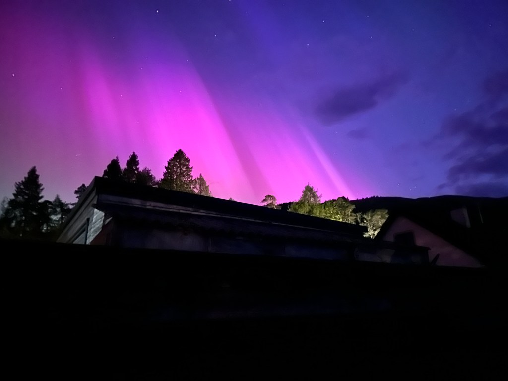 View of the day wasn’t a view of the mountains or rivers, but of the Aurora Borealis which put in a spectacular appearance that night. Better seen on the phone rather than with the naked eye, the views need no description. Awe inspiring.
