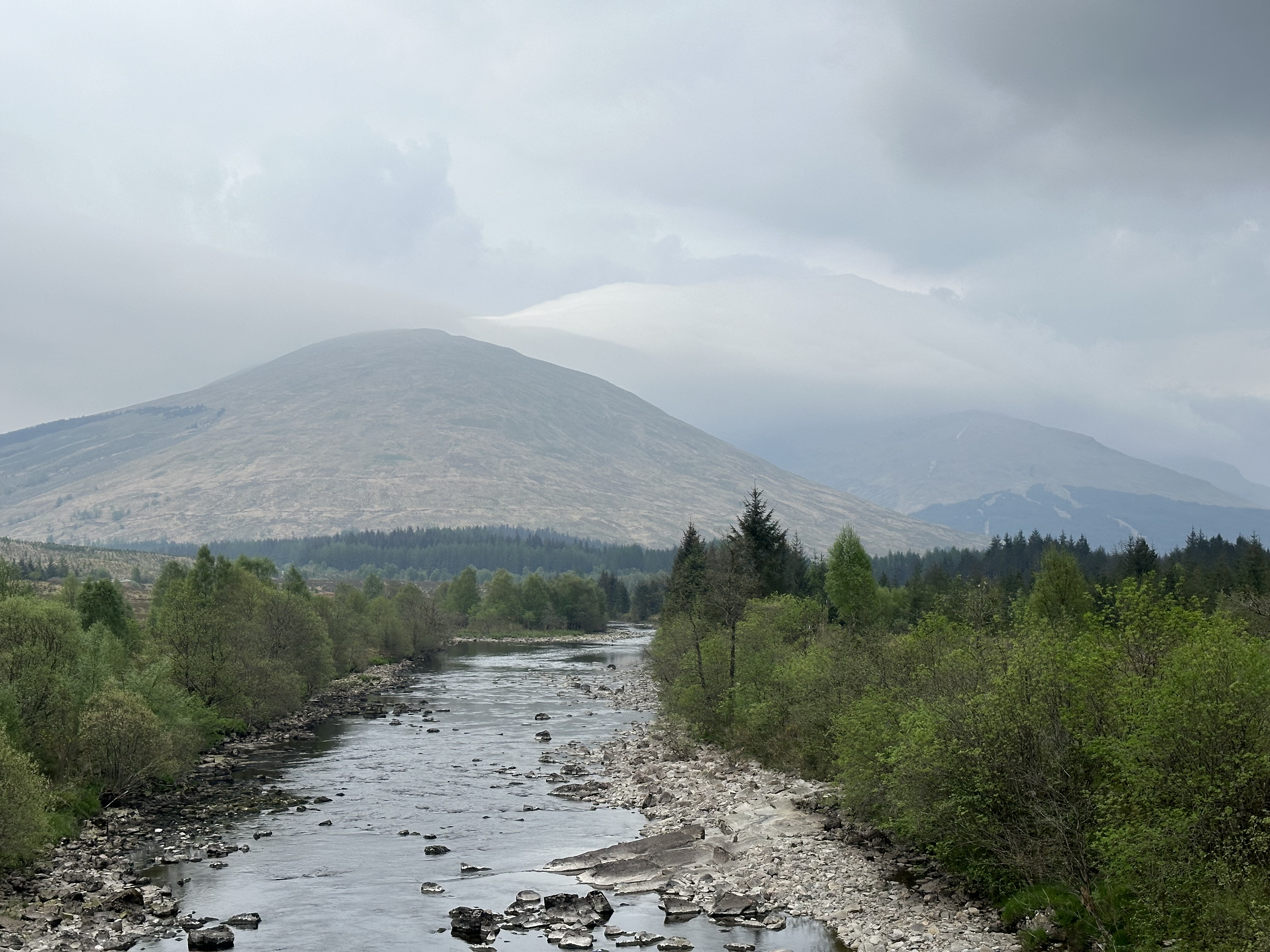 As we crossed the Bridge of Orchy a look left and south showed Beinn Dorain being overshadowed by what looked like a larger mountain, only this was just an odd cloud formation.
