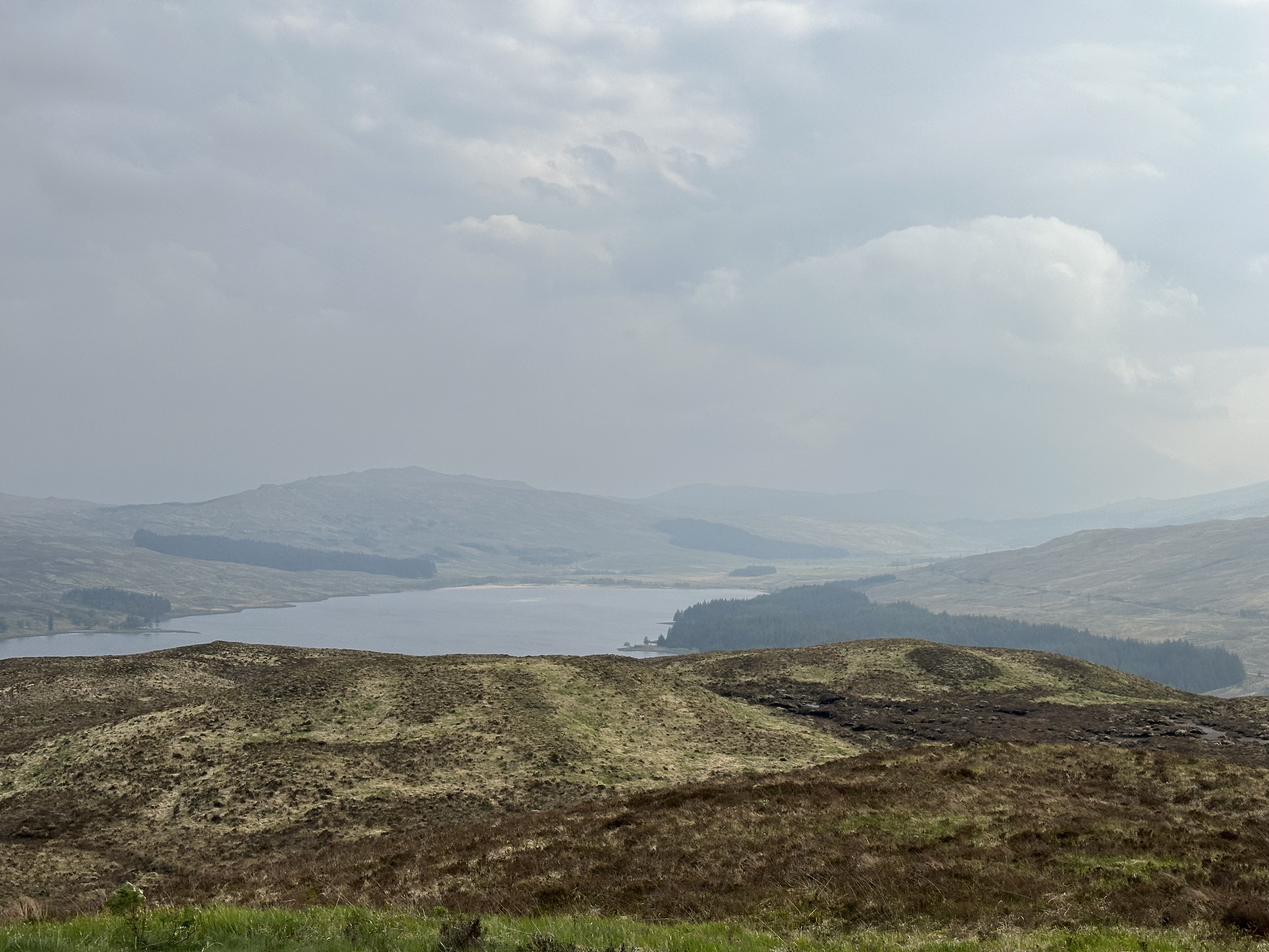 Over the brow of the hill, Loch Tulla was visible below, albeit the low cloud made for a hazy view.